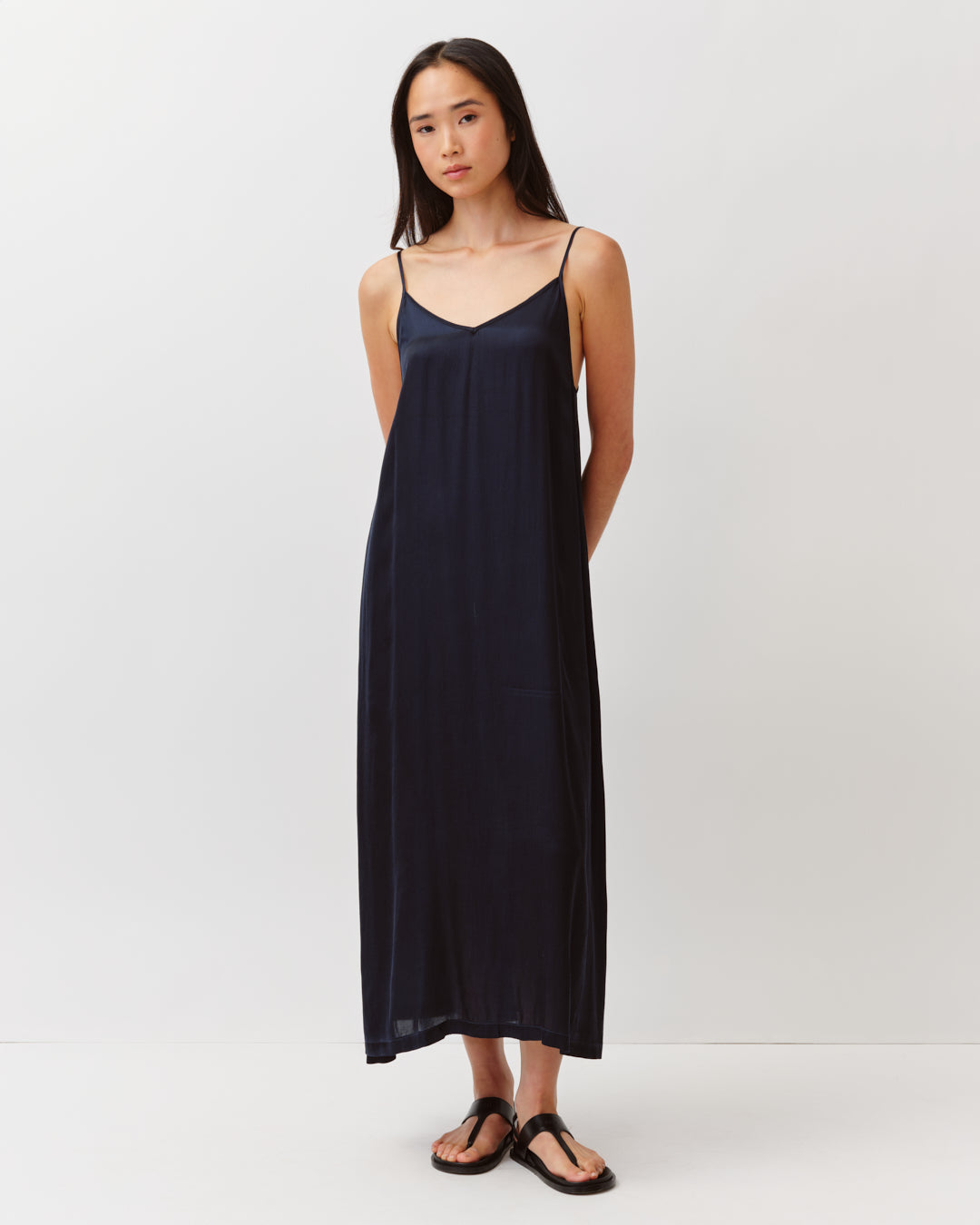 La robe REWO est une robe longue à fines bretelles, dotée d’une encolure en V devant et dos. Sa coupe fluide et épurée suit naturellement les lignes du corps, offrant une allure légère et féminine. Un modèle facile à porter, idéal seul ou superposé selon la saison.
