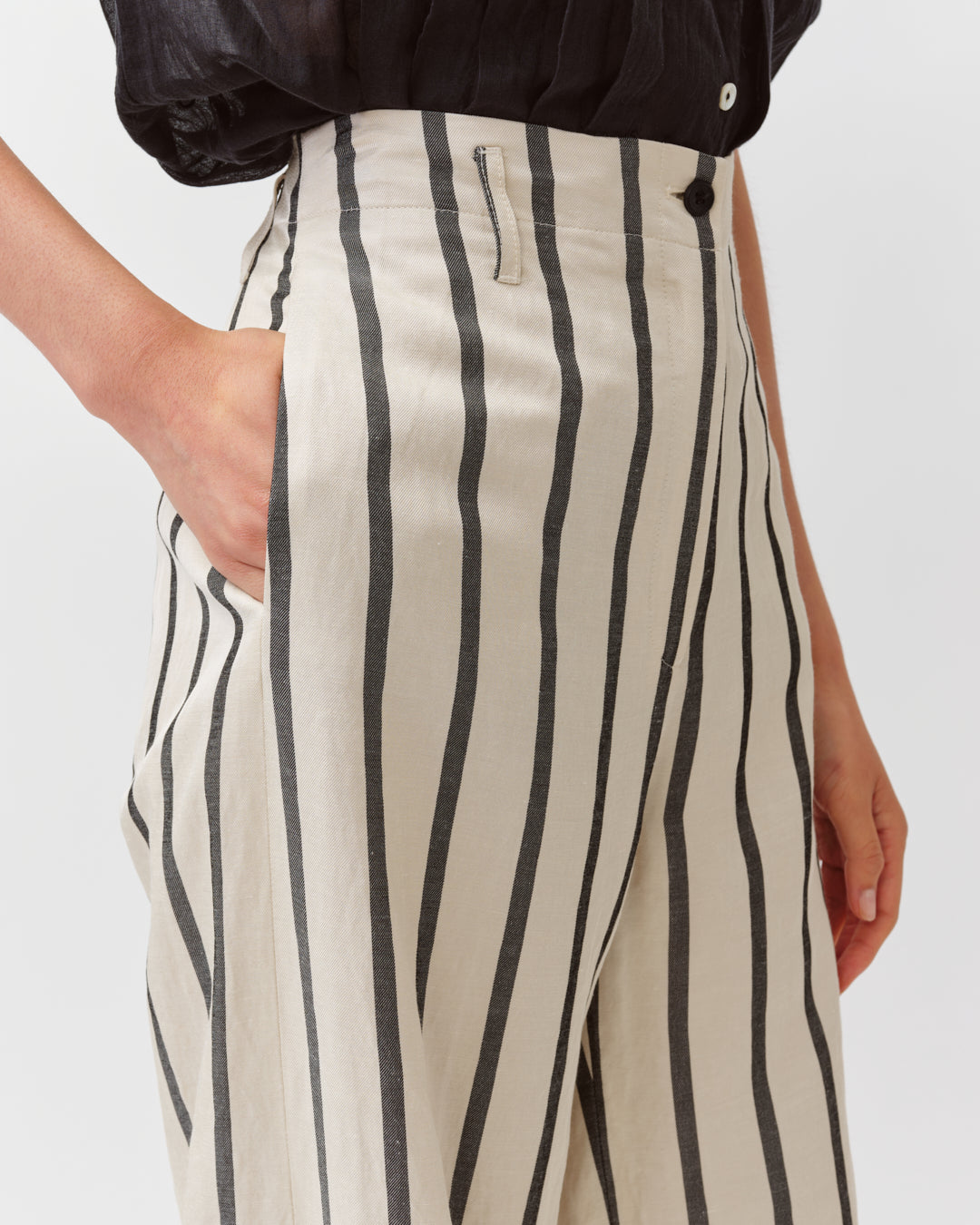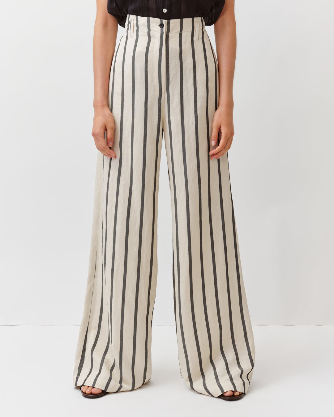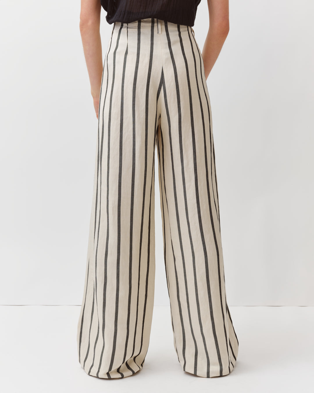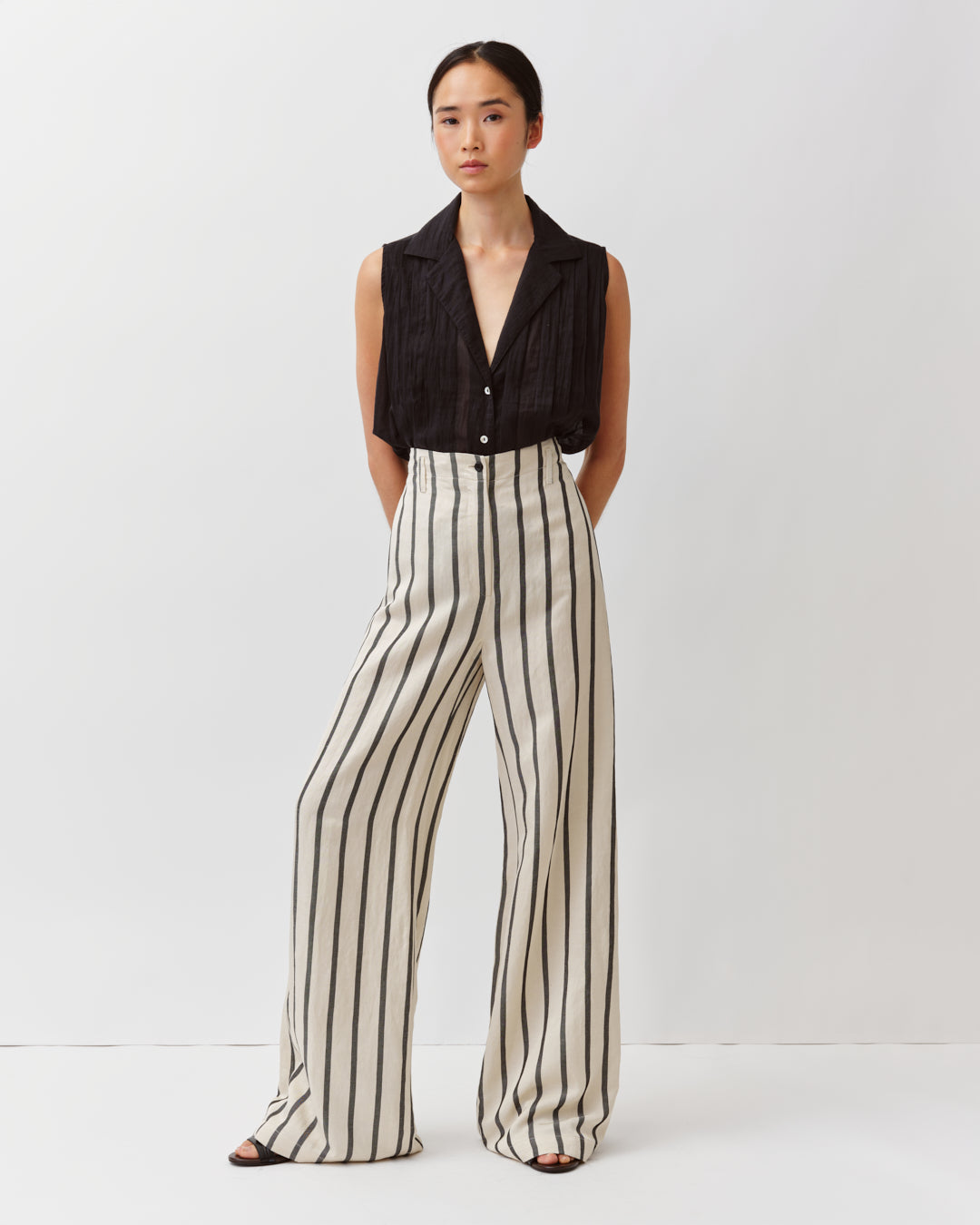Pantalon large à taille mi-haute, doté d’une ceinture à passants et d’une braguette zippée. Sa coupe fluide et sa jambe évasée allongent la silhouette avec élégance. Un essentiel du vestiaire féminin, à la fois structuré et confortable.