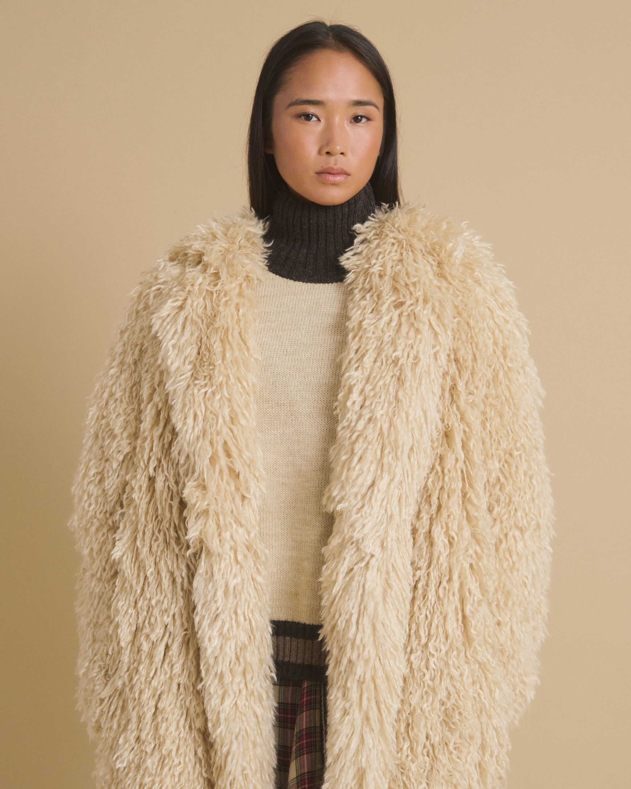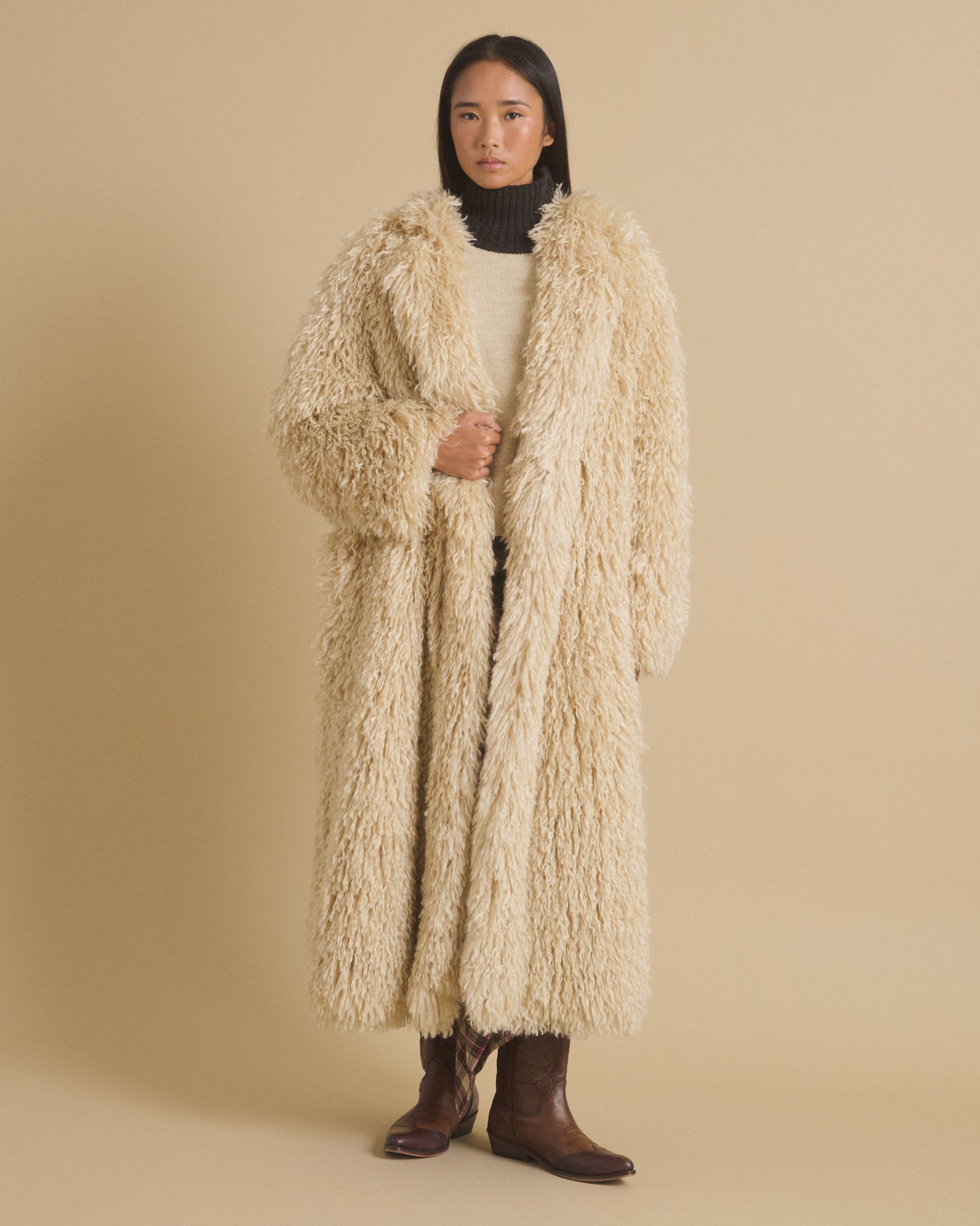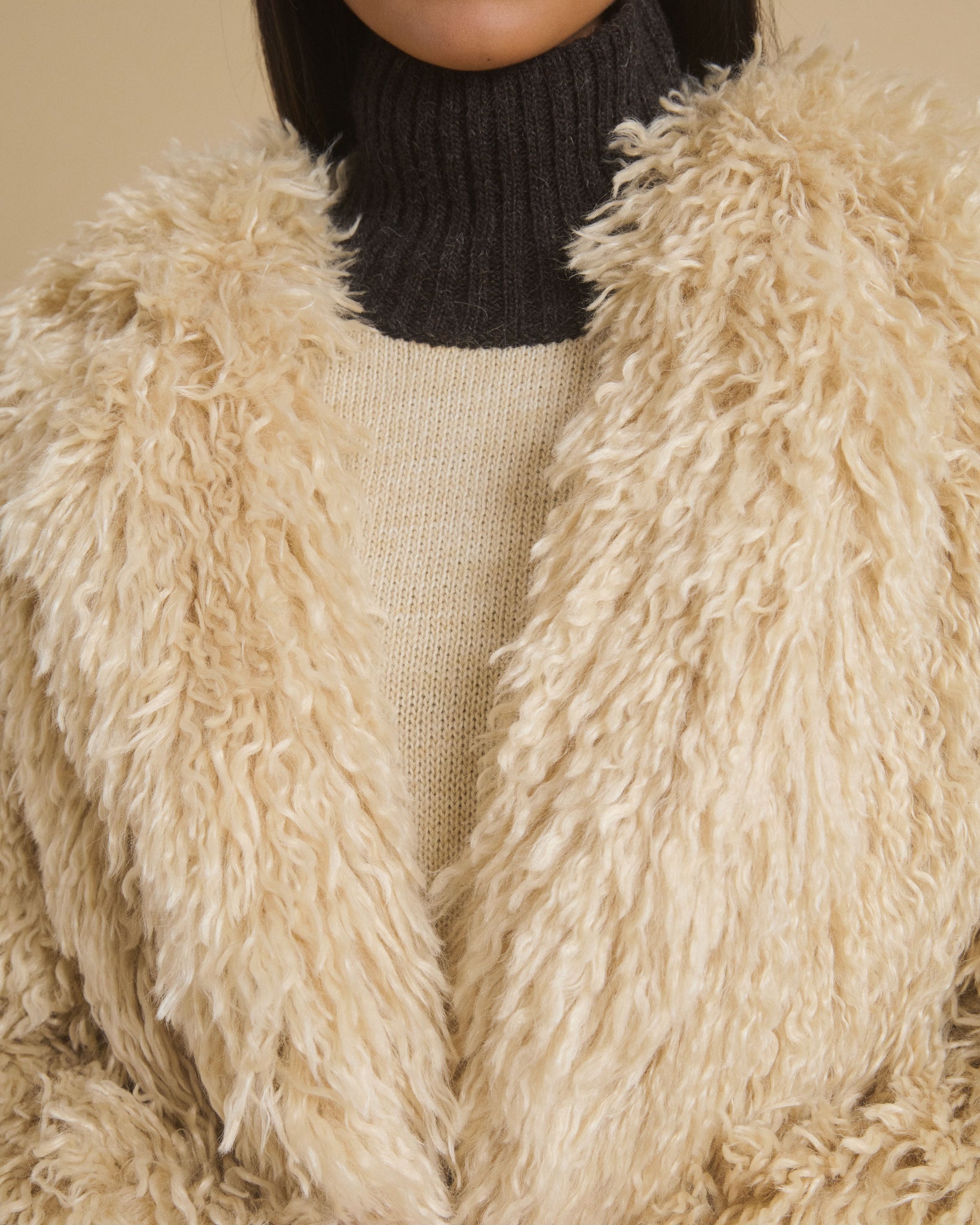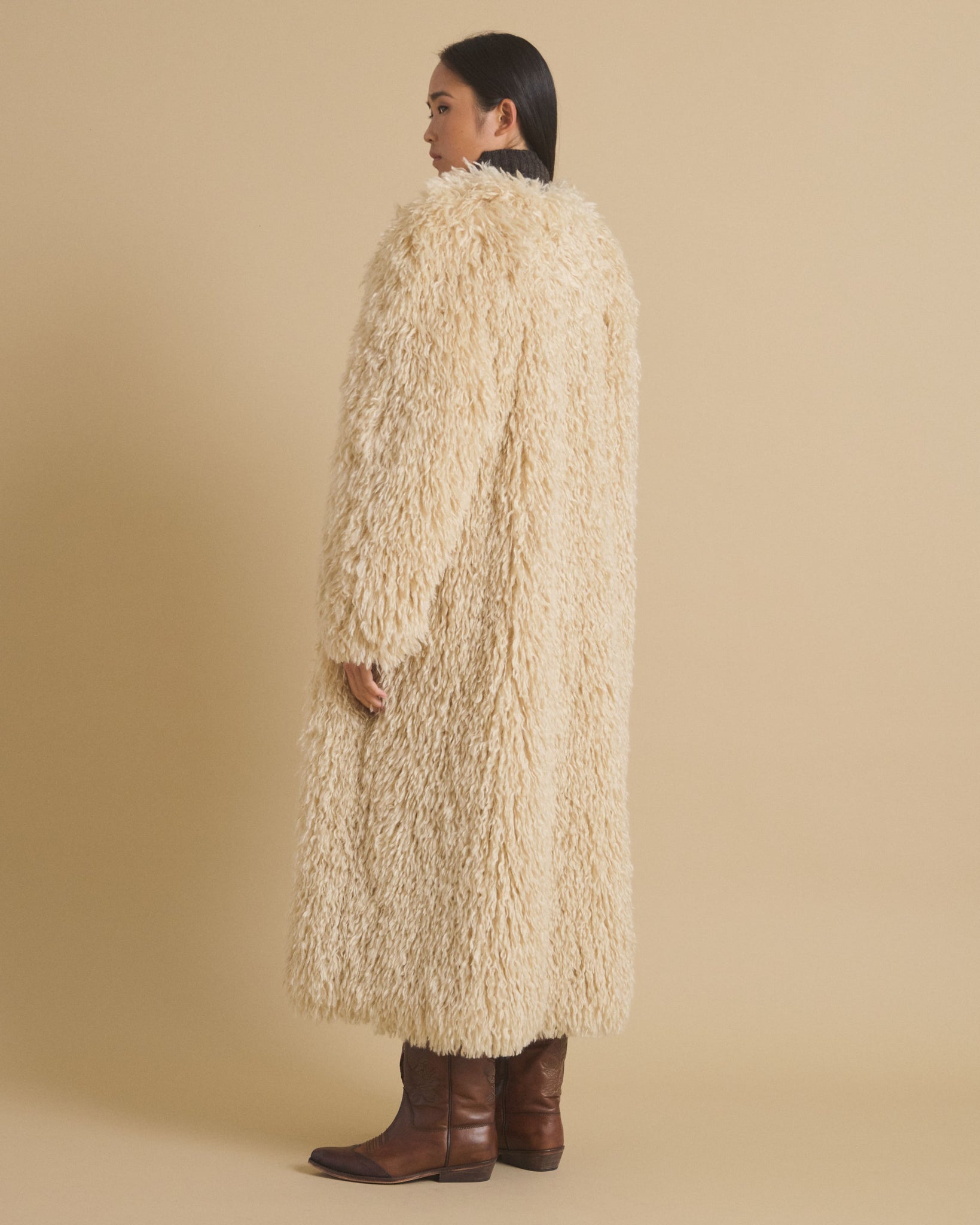 Grand manteau en fausse fourrure à col rond