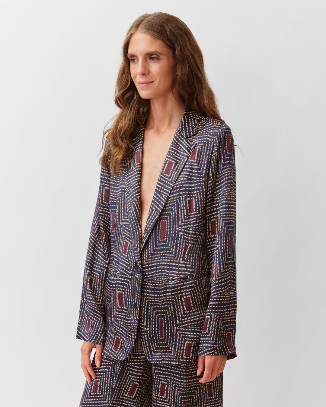 Veste tailleur à une boutonnière, structurée mais fluide, avec poches passepoilées et revers allongés. Son tombé souple et sa ligne élancée reflètent l’équilibre entre sophistication et désinvolture, signature du vestiaire DIEGA. Une pièce intemporelle, pensée pour accompagner chaque silhouette avec justesse.