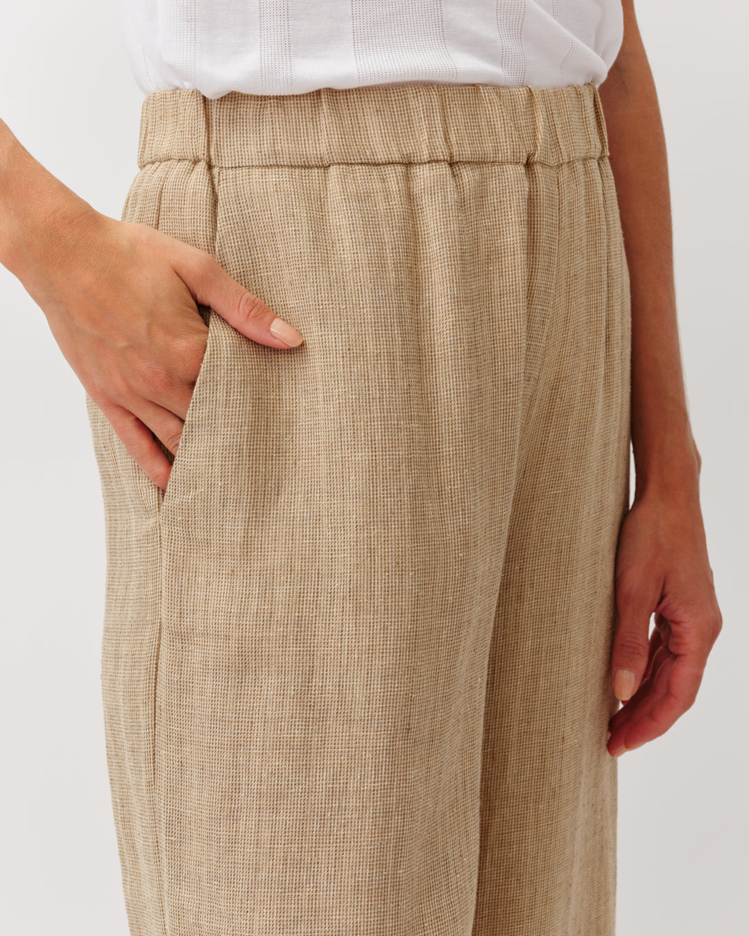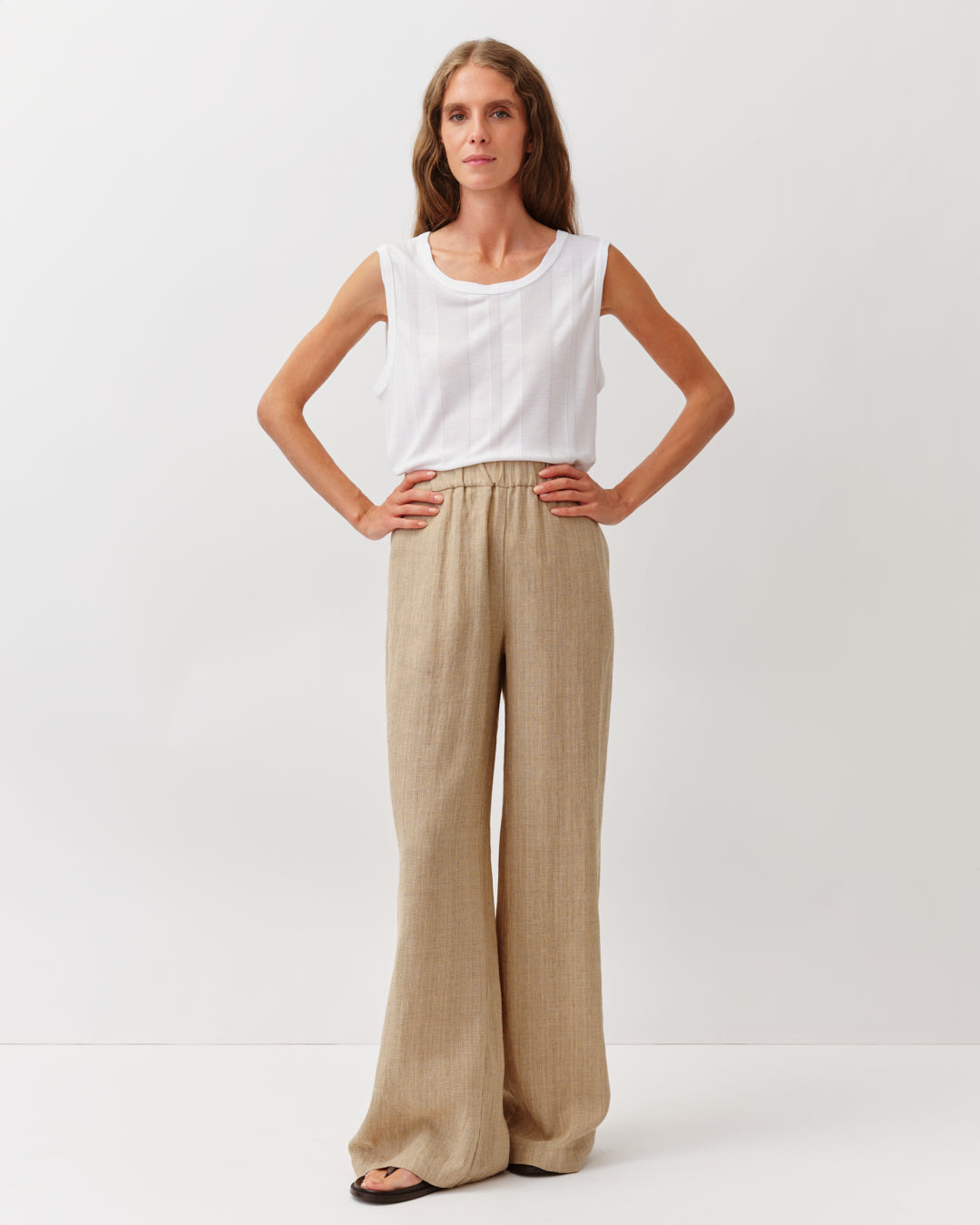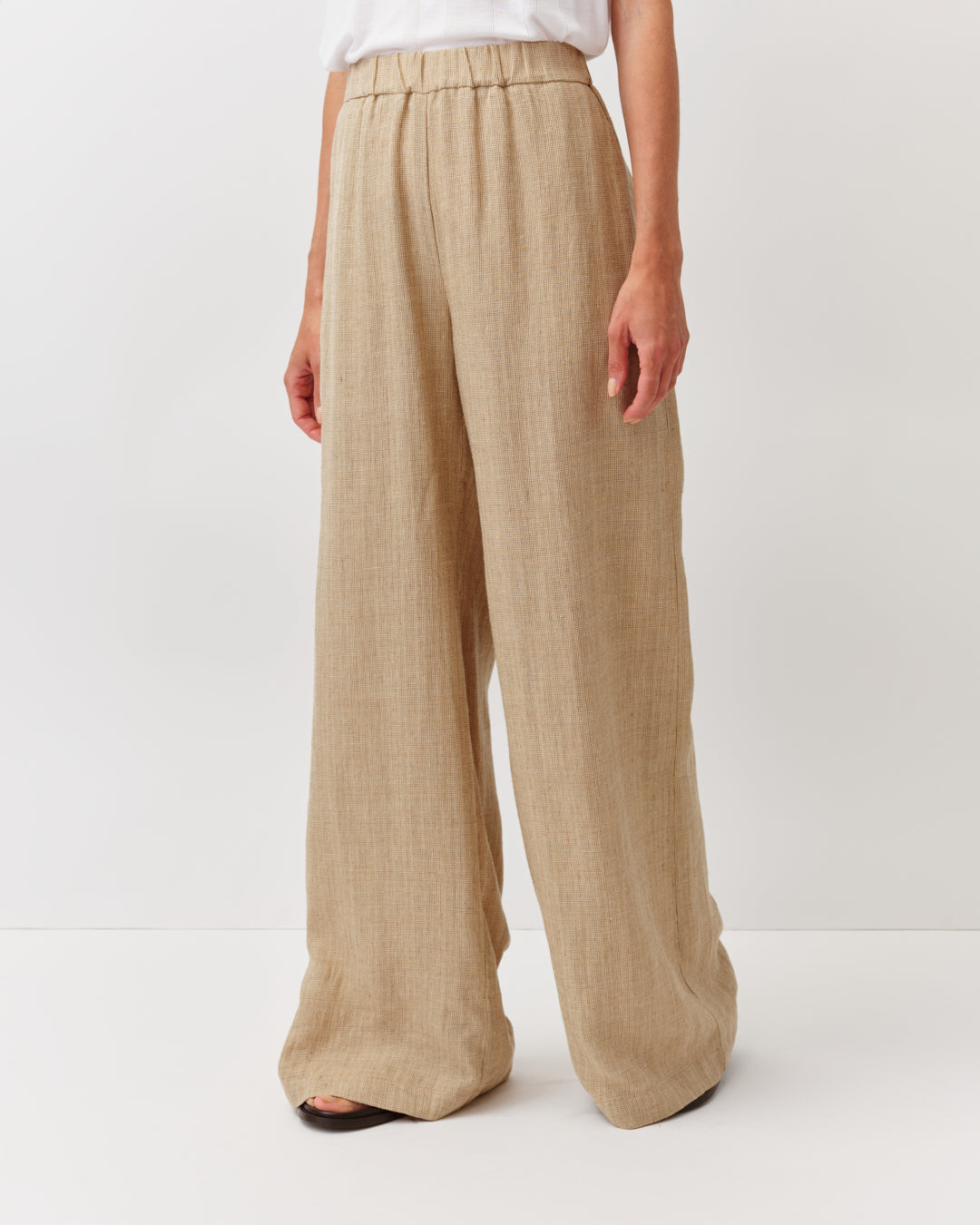 Pantalon large à taille élastiquée, confectionné dans une matière fluide pour un tombé léger et confortable. Il présente des poches latérales et une ligne ample qui accompagne les mouvements. Une pièce facile à porter, idéale pour un style décontracté et élégant.