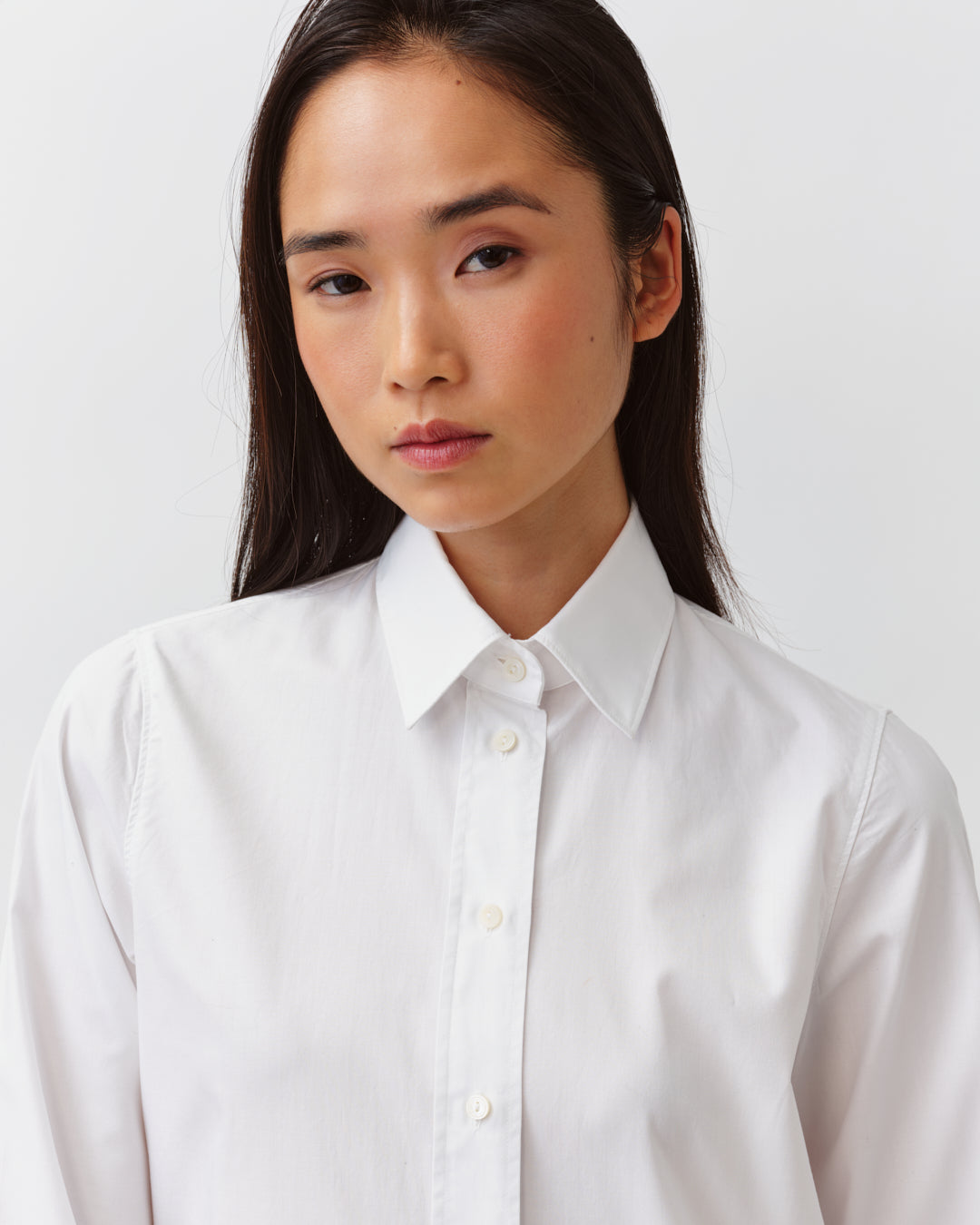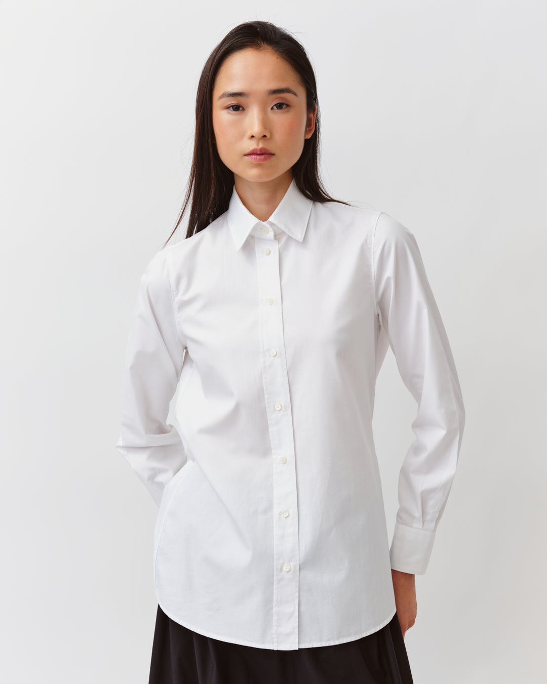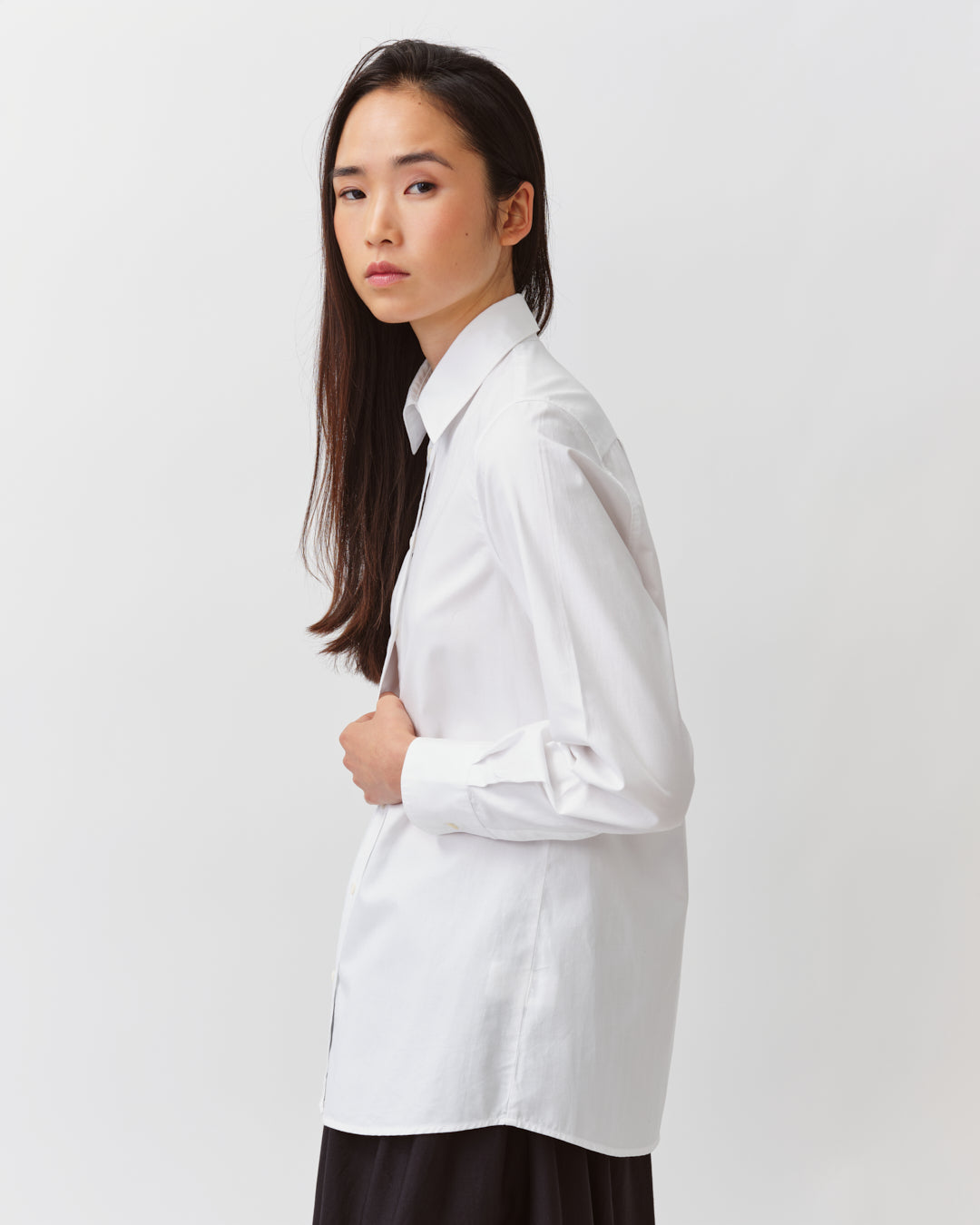 Chemise droite à la ligne épurée. Col classique et patte de boutonnage apparente sur le devant. Manches longues à poignets boutonnés et base légèrement arrondie. Une coupe intemporelle aux finitions soignées pour un style élégant et facile à porter.