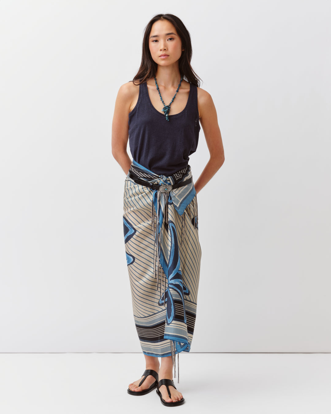 Le paréo DIEGA est un grand rectangle à franges, confectionné dans une matière légère et fluide. Il peut se porter de différentes façons : noué autour de la taille, en haut de maillot, sur les épaules ou en foulard. Ses dimensions généreuses permettent une grande liberté d’usage. Les motifs, dessinés par la marque, apportent une touche graphique et colorée à chaque tenue estivale.